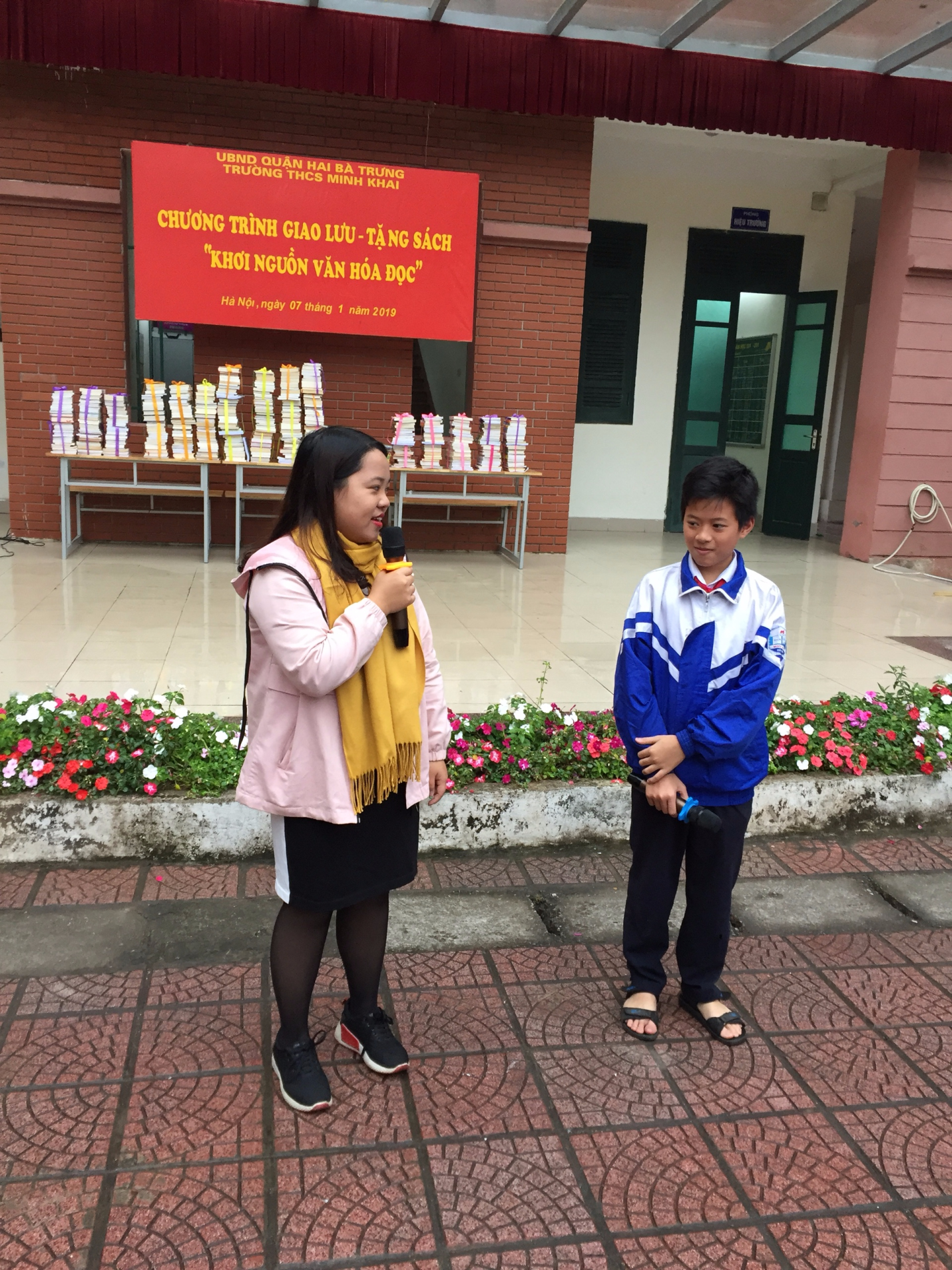 Chuyền - Phó chủ tịch Go Book Clup với học sinh Minh Khai.