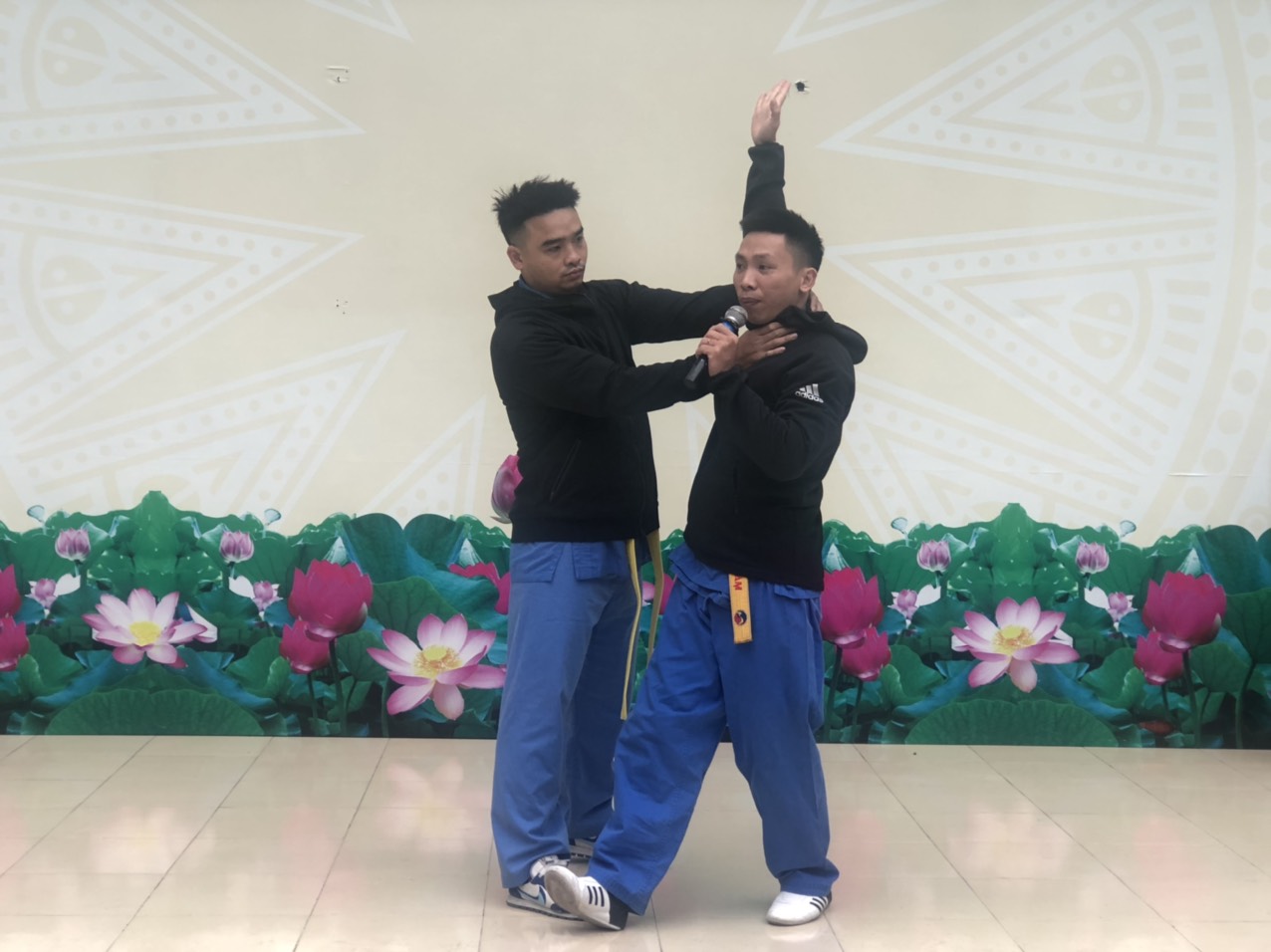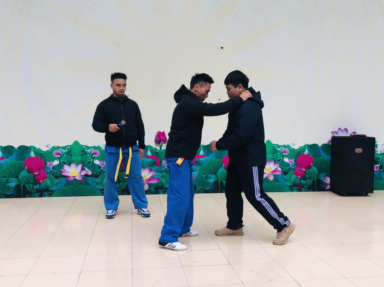 Trường phối hợp cùng trung tâm võ thuật hướng dẫn học sinh bốn động tác tự vệ khi bị người lạ tấn công.